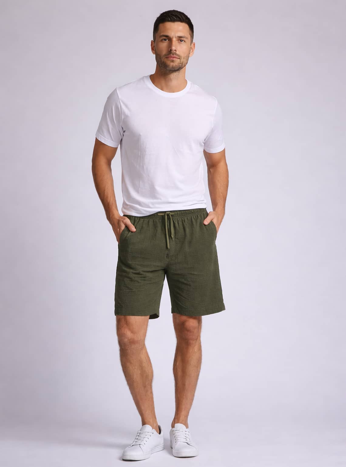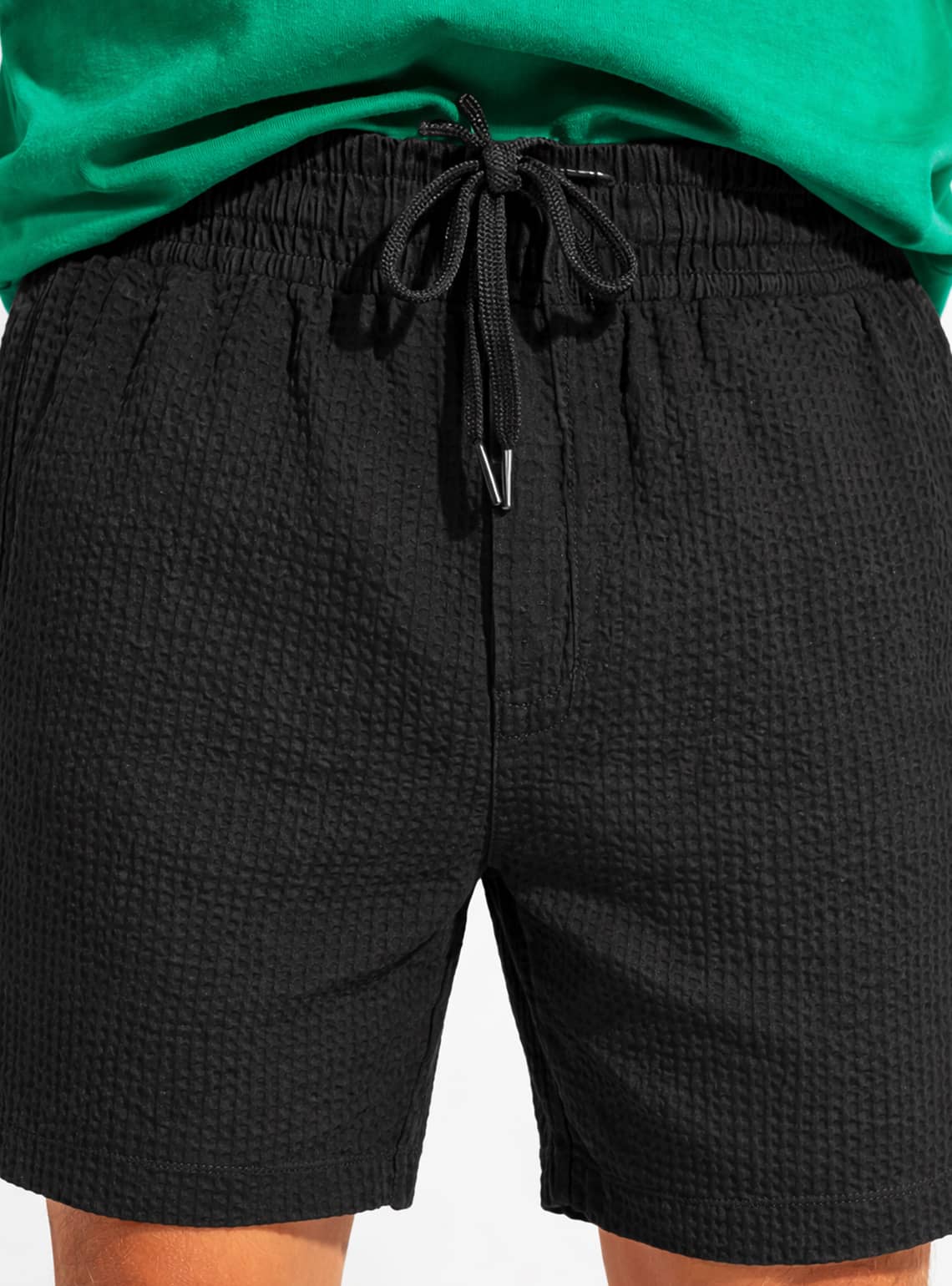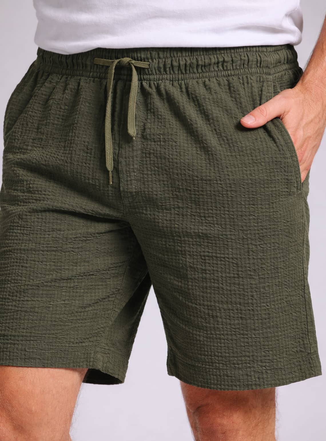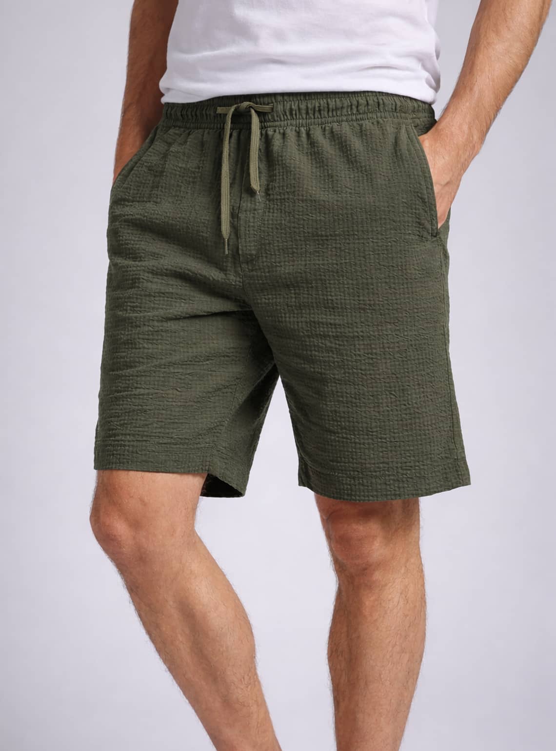 Crafted for warm days and easygoing style, these seersucker drawstring shorts offer the perfect balance of comfort and classic design. The lightweight, textured fabric keeps the feel breathable and relaxed, while the elastic waistband with an adjustable drawstring ensures a flexible, secure fit. With a clean, timeless look that pairs effortlessly with tees or shirts, these shorts are an easy choice for everyday casual wear and laid-back outings.