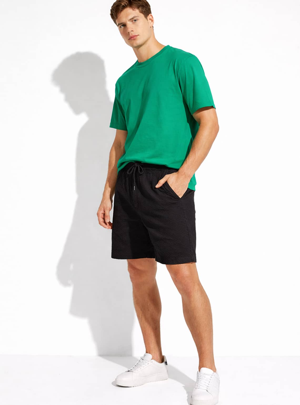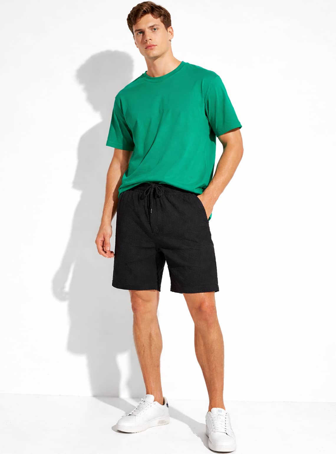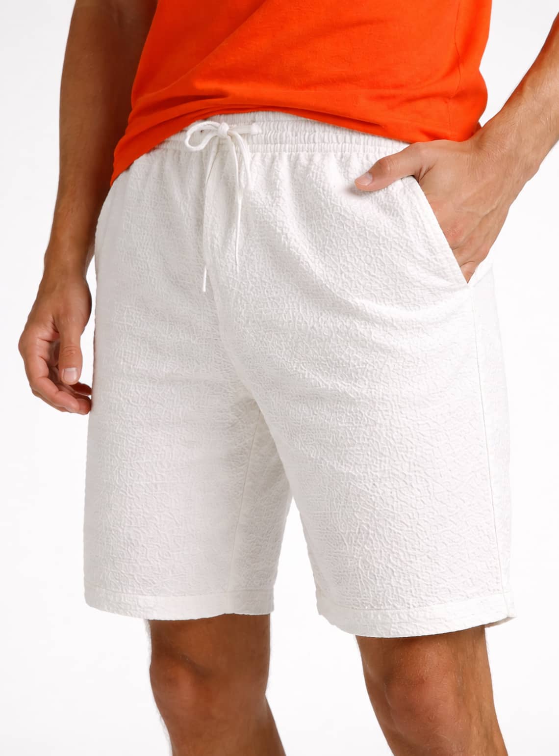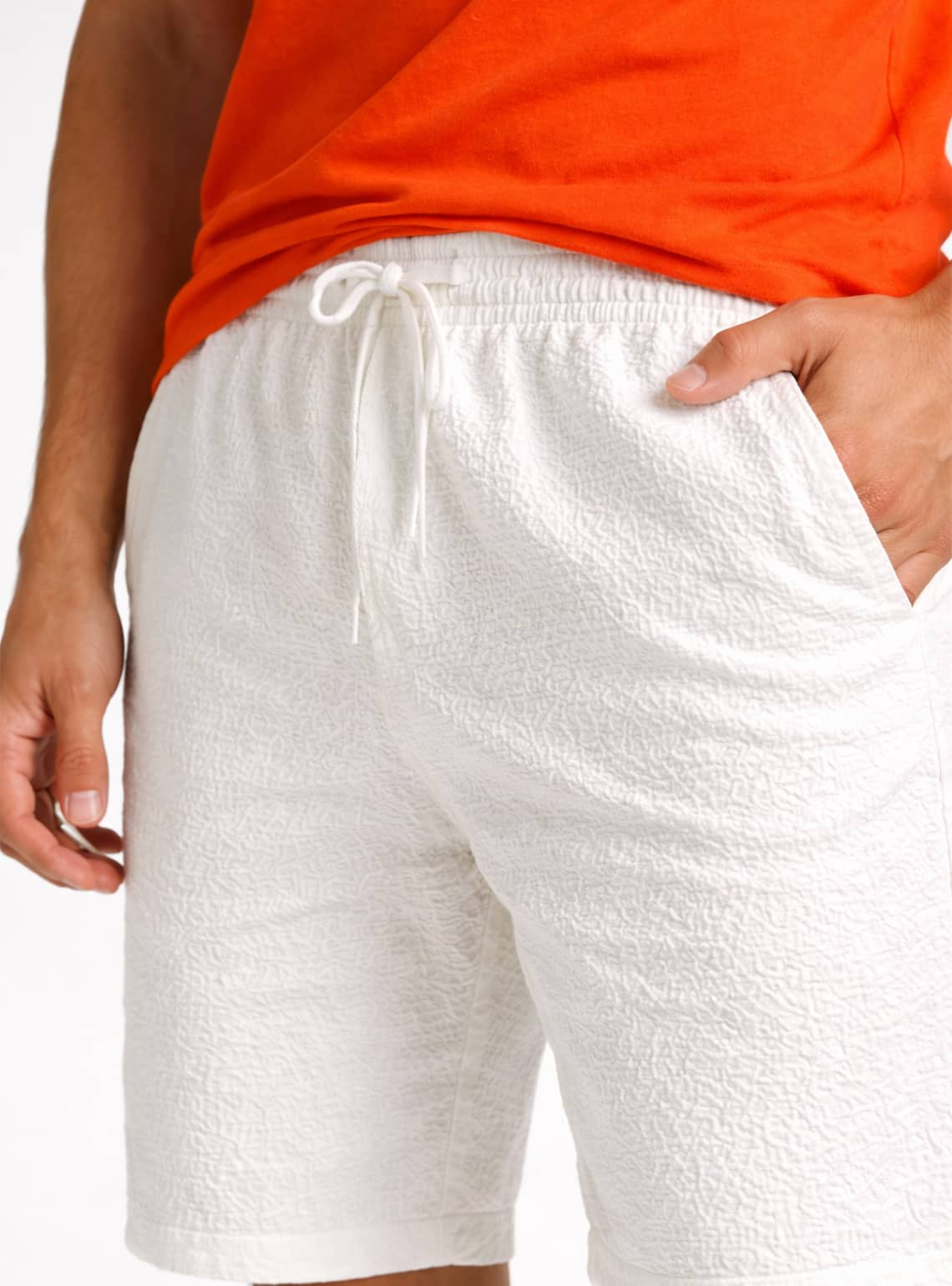 Crafted for warm days and easygoing style, these seersucker drawstring shorts offer the perfect balance of comfort and classic design. The lightweight, textured fabric keeps the feel breathable and relaxed, while the elastic waistband with an adjustable drawstring ensures a flexible, secure fit. With a clean, timeless look that pairs effortlessly with tees or shirts, these shorts are an easy choice for everyday casual wear and laid-back outings.