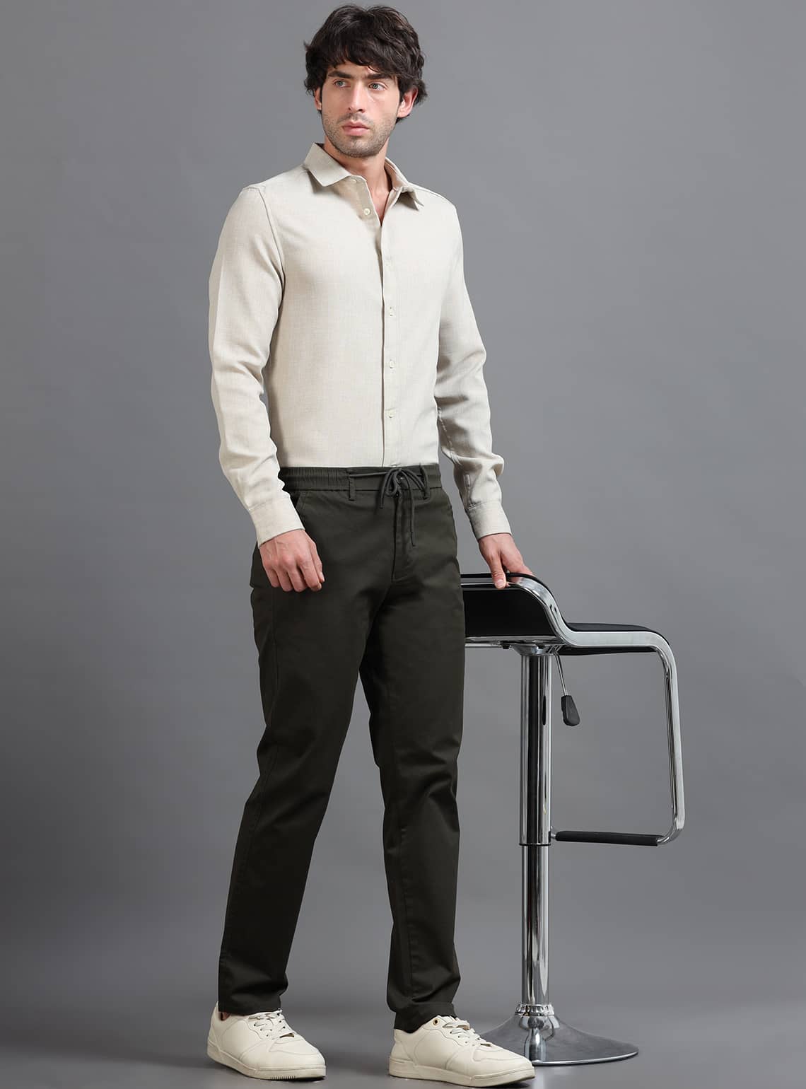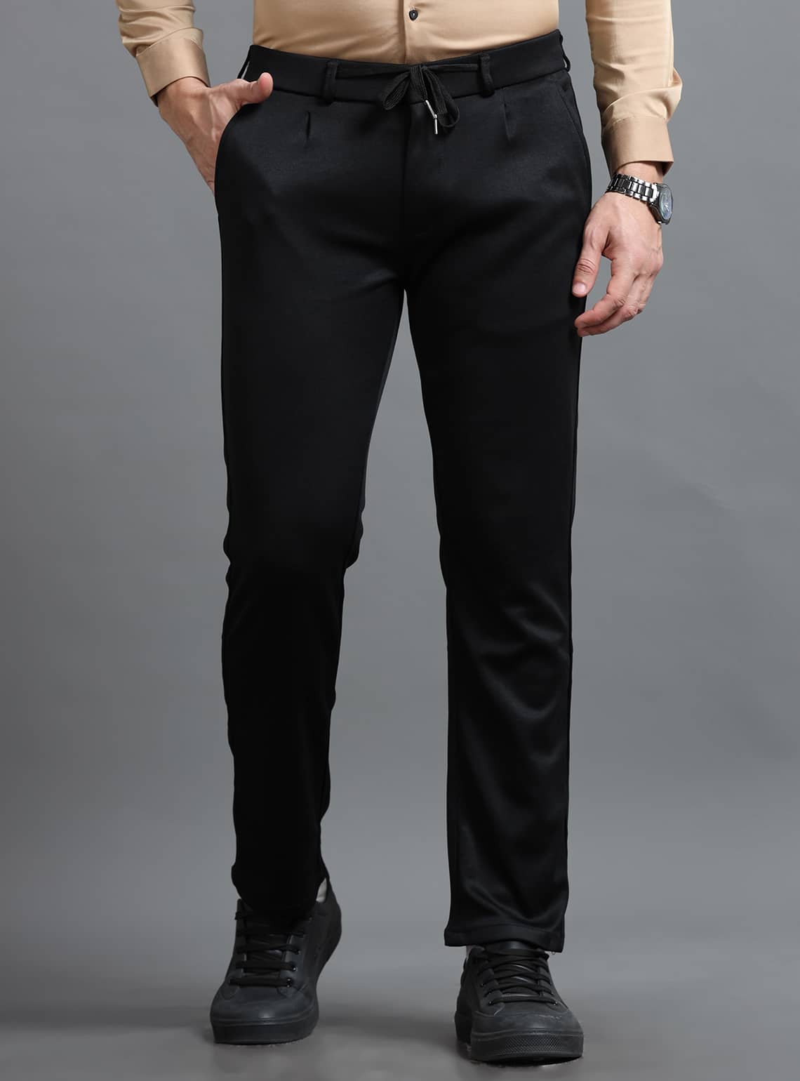 Crafted from premium cotton stretch fabric, these Men’s Relaxed Fit Drawstring Trousers combine comfort with effortless style. Designed with a relaxed silhouette, they feature a drawstring waistband with belt loops and button closure for a versatile smart-casual look. The front pleat detailing adds a refined touch, making them easy to pair with polos, shirts, or lightweight blazers for everyday wear or casual outings.