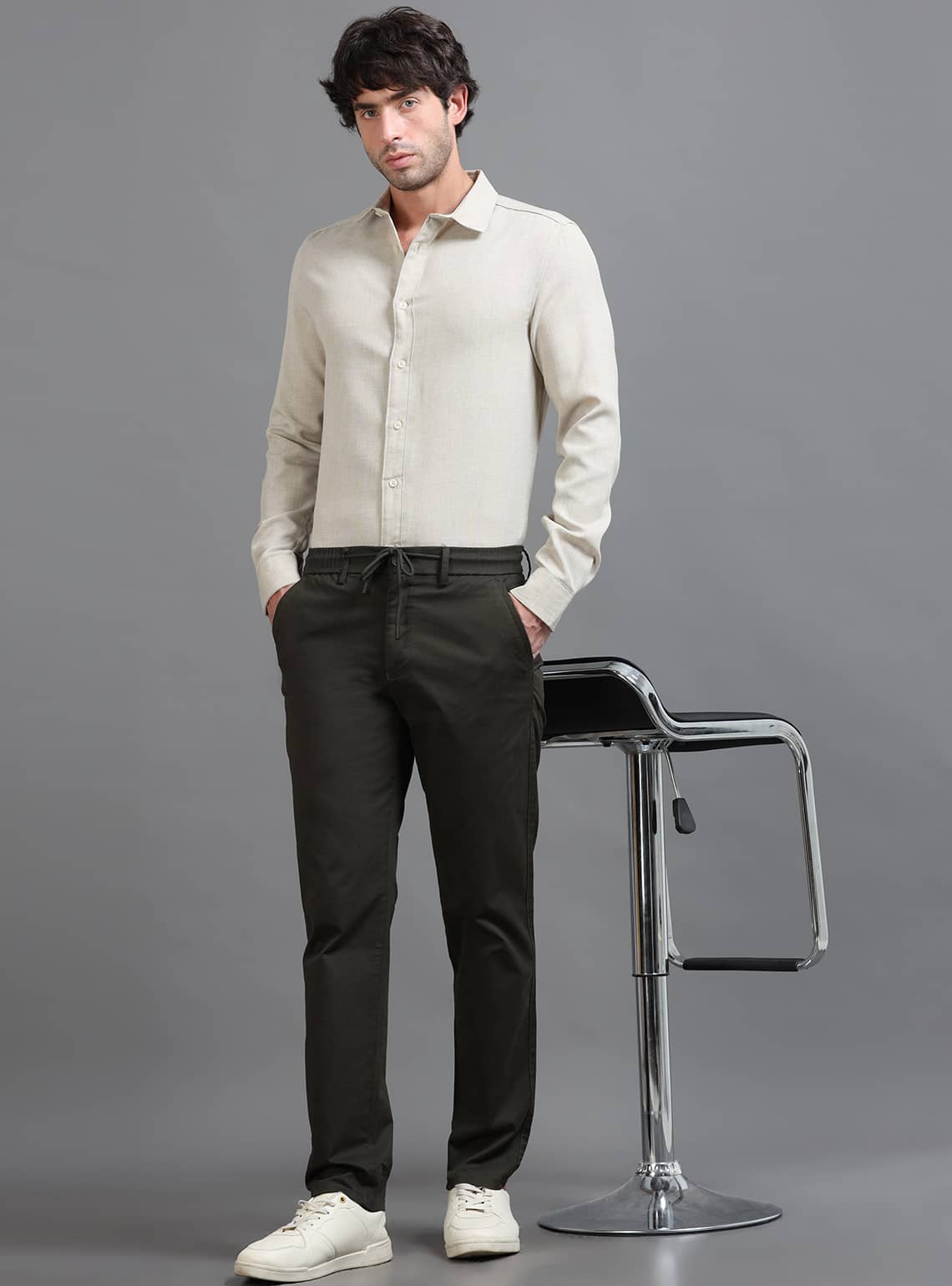 Provides a comfortable and versatile option for everyday wear, combining a relaxed fit with breathable cotton stretch fabric for ease of movement. The adjustable drawstring waistband ensures a secure and customizable fit, while the tailored details add a refined touch, making these trousers suitable for both casual and smart-casual styling.